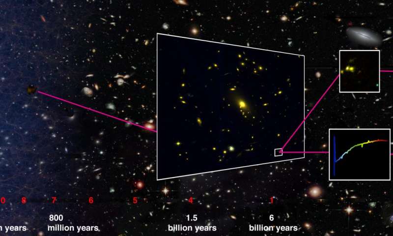 «Gli altri oggetti celesti più lontani osservati finora sono estremamente brillanti e probabilmente rari in confronto alle altre galassie» dice Austin Hoag, primo autore dell’articolo che descrive la scoperta, pubblicato oggi online sul sito della rivista Nature Astronomy. «Riteniamo che la galassia da noi scoperta sia la più rappresentativa tra quelle presenti in quella remota epoca». Queste galassie ultradistanti, osservate agli albori dell’universo, sono molto interessanti per gli astronomi poiché si trovano a splendere nella cosiddetta epoca della reionizzazione, un periodo collocato tra circa 300mila e un miliardo di anni dopo il big bang in cui l’universo è diventato “trasparente”, rendendo visibile la luce delle prime stelle e galassie.