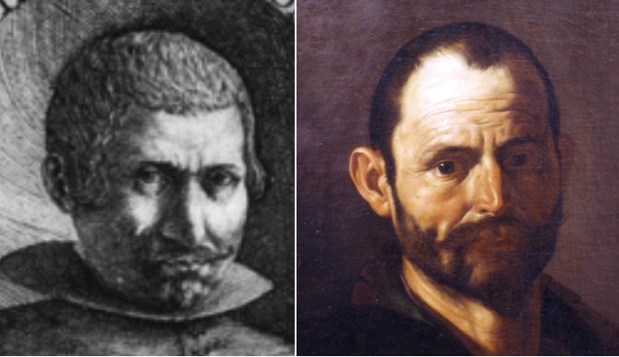 Particolare della testa dell’autoritratto di Fontana (a sinistra) con il ritratto del dipinto “La Vista” di Jusepe Ribera, databile attorno al 1615, oggi conservato al museo Franz Mayer di Città del Messico
