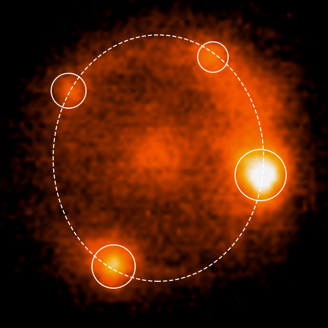 L’occasione è ghiotta. Subito entrano in azione i migliori telescopi da terra e dallo spazio. Prima il Very Large Telescope dell’Eso, in Cile, poi il 22 ottobre è il turno dell’Osservatorio del Keck, alle Hawaii. Tre giorni dopo, il 25 ottobre, vengono azionati i razzi del telescopio spaziale Hubble per orientarlo verso la supernova. Il 5 novembre ancora il Keck. E sono proprio questi due, Hubble e il Keck, a mettere in evidenza, lungo un anello dal raggio di “appena” 3000 anni luce (la linea tratteggiata nella figura a inizio articolo), un’immagine mai vista prima: una supernova di tipo Ia “scissa” in quattro.