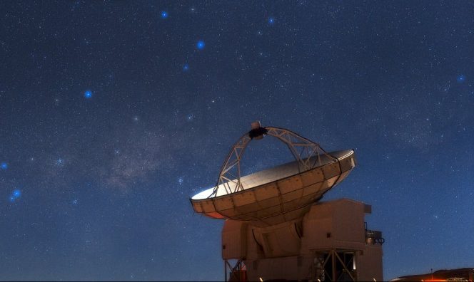 Il telescopio APEX dell’Eso, situato sull’altipiano di Chajnantor, in Cile, a 5000 metri d’altitudine.