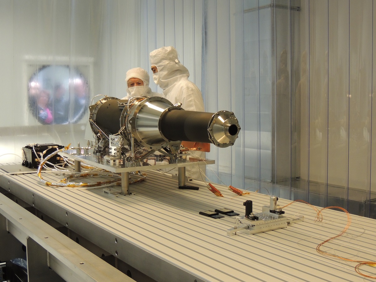 Lo strumento Metis nei laboratori di Thales Alenia Space a Torino, prima della partenza alla volta della sede di Airbus Defence & Space nel Regno Unito