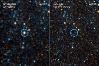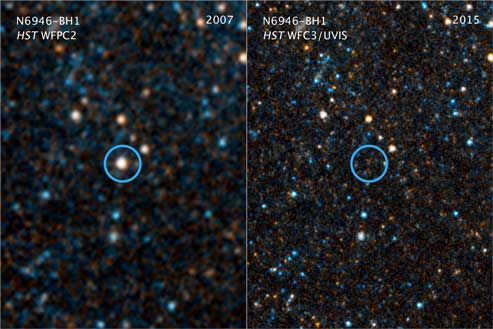 A questo punto, sempre più incuriositi, Scott Adams (all’epoca dottorando alla Ohio State University) e i suoi colleghi Christopher Kochanek e Krzystof Stanek decidono di vederci chiaro. Chiedono ai due telescopi spaziali Hubble e Spitzer – quest’ultimo in grado di stanare, con il suo sguardo a infrarossi, anche stelle nascoste dietro un mantello di polvere – di dare un’occhiata là dove un tempo c’era N6946-BH1. Zero.