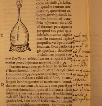 «In realtà l’idea stessa della scoperta, come evento casuale, in questo caso c’entra poco: il ritrovamento delle note a margine segue almeno quattro anni di ricerche intense su Santorio e la nascita della quantificazione in medicina, iniziata con una borsa postdottorale presso il Warburg Institute di Londra nel lontano 2013. Come parte di quelle ricerche avevo iniziato a catalogare diverse edizioni esistenti delle opere di Santorio e anche scoperto diverse lettere e documenti inediti. Un mattino di agosto, presso la British Library di Londra, apro l’edizione del Commento al Canone di Avicenna (Commentaria in Primam Fen Primi Libri Canonis Avicennae 1625) e noto delle annotazioni. Sulle prime non mi sorprendo molto: quasi tutte le edizioni di Santorio sono annotate, in quanto costituivano libri di testo parecchio ricercati in tutta Europa. Questa edizione presentava però qualcosa di strano: anziche’ commentare il testo, aggiungeva parti, correggeva, rivedeva riferimenti, e integrava considerevolmente, in alcuni casi chiarendo passaggi particolarmente difficili. Insomma, si trattava di indicazioni per un’edizione successiva, purtroppo mai apparsa data la morte dell’autore. Leggendo (peraltro con estrema difficoltà dato il carattere manoscritto del testo latino e il fatto che i margini del libro sono stati tagliati), arriva la conferma definitiva: l’autore parla in prima persona talora anche facendo uso del ‘nos’ tipico del plurale maiestatis. È stato un momento incredibile ed emozionante, anche perché in uno di questi marginalia Santorio spiega da dove è arrivato lo spunto per costruire uno dei suoi strumenti clinici».