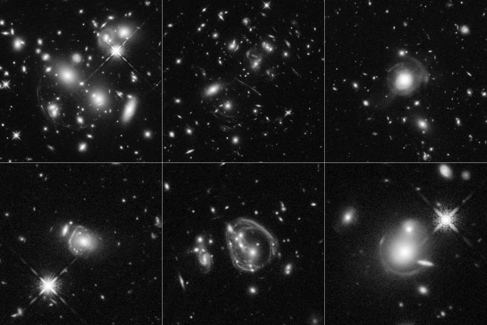 Queste sei immagini sono state scattate dall’Hubble Space Telescope di Nasa ed Esa e mostrano una serie di lenti gravitazionali. Le galassie sono ben 10mila volte più luminose della nostra Via Lattea. Crediti: Nasa, Esa e J. Lowenthal (Smith College)