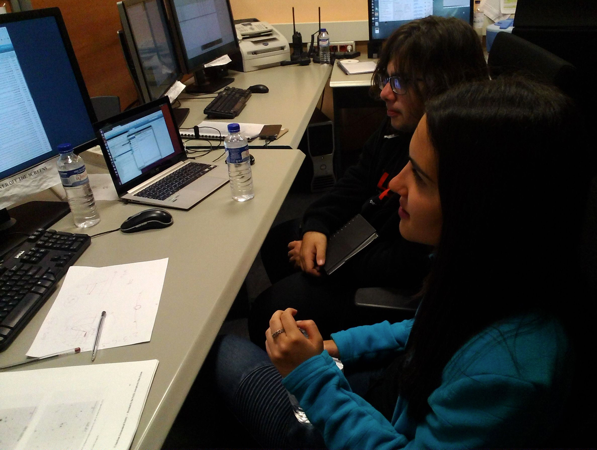 Giulia e Ferdinando al Tng, intenti a elaborare l’immagine astronomica appena acquisita con il telescopio