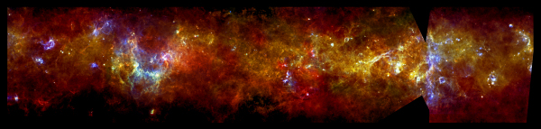 La struttura filamentosa del piano galattico. Credit: ESA/PACS & SPIRE Consortium, S. Molinari, Hi-GAL Project