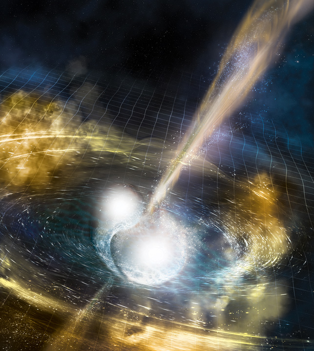 Al momento della collisione, gran parte della massa delle due stelle di neutroni si è fusa in un oggetto densissimo, emettendo un lampo di raggi gamma. Le misure iniziali di raggi gamma, combinate con la rivelazione dell’onda gravitazionale, forniscono anche la conferma della teoria della relatività generale di Albert Einstein, secondo cui le onde gravitazionali viaggiano alla velocità della luce.