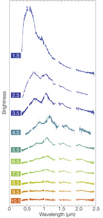 Montaggio di diversi spettri ottenuti con lo strumento X-Shooter montato sul Vlt dell’Eso. Crediti: Eso/E. Pian et al./S. Smartt e ePessto