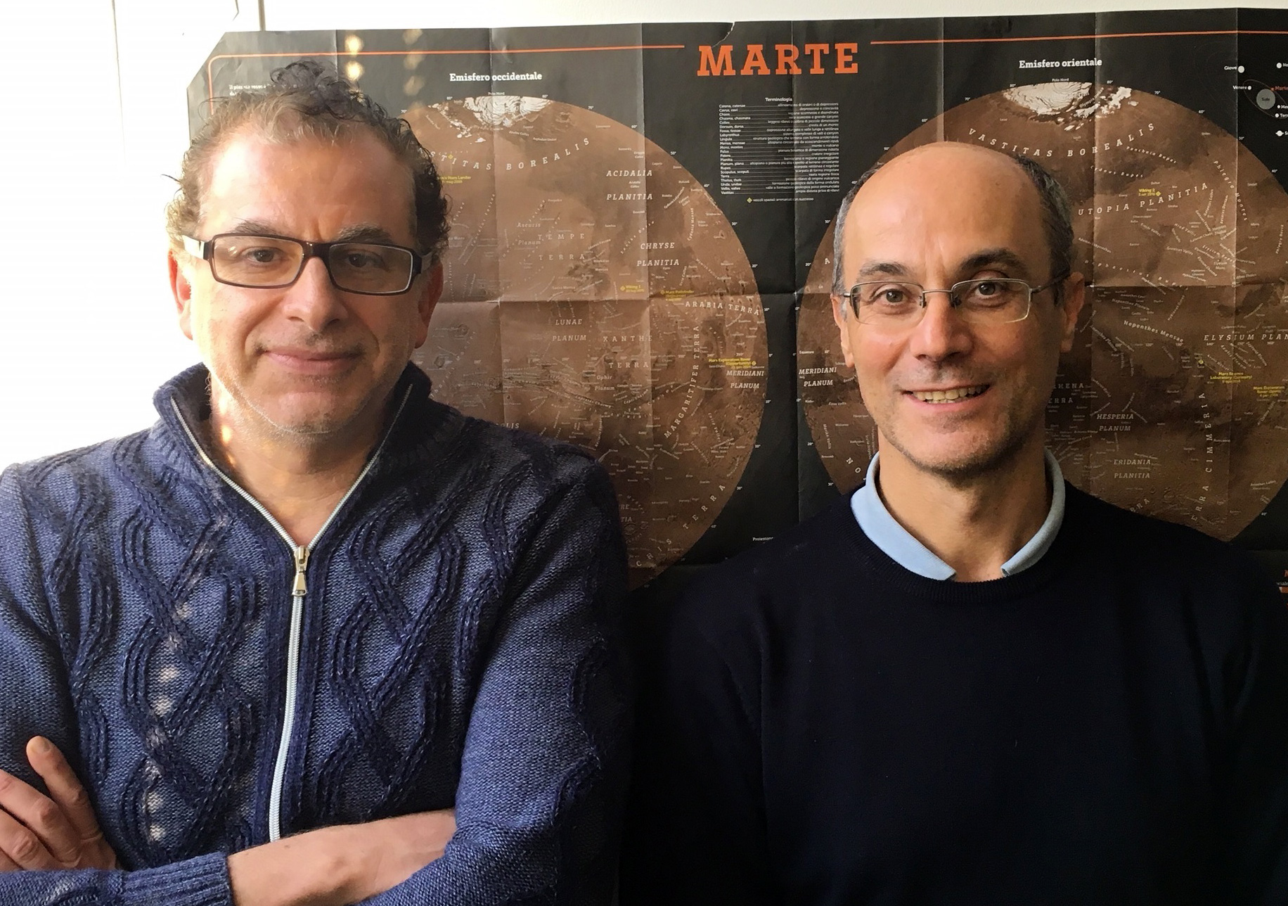 Fabio De Blasio (sx) e Giovanni Battista Crosta (dx) sono i due esperti di frane marziane di Milano-Bicocca, autori dello studio uscito su The European Physical Journal Plus