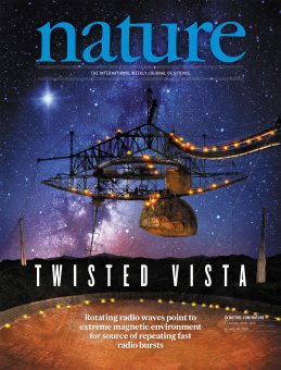 - Leggi su Nature l’articolo “An extreme magneto-ionic environment associated with the fast radio burst source FRB 121102”, di D. Michilli, A. Seymour, J. W. T. Hessels, L. G. Spitler, V. Gajjar, A. M. Archibald, G. C. Bower, S. Chatterjee, J. M. Cordes, K. Gourdji, G. H. Heald, V. M. Kaspi, C. J. Law, C. Sobey, E. A. K. Adams, C. G. Bassa, S. Bogdanov, C. Brinkman, P. Demorest, F. Fernandez, G. Hellbourg, T. J. W. Lazio, R. S. Lynch, N. Maddox, B. Marcote, M. A. McLaughlin, Z. Paragi, S. M. Ransom, P. Scholz, A. P. V. Siemion, S. P. Tendulkar, P. Van Rooy, R. S. Wharton e D. Whitlow