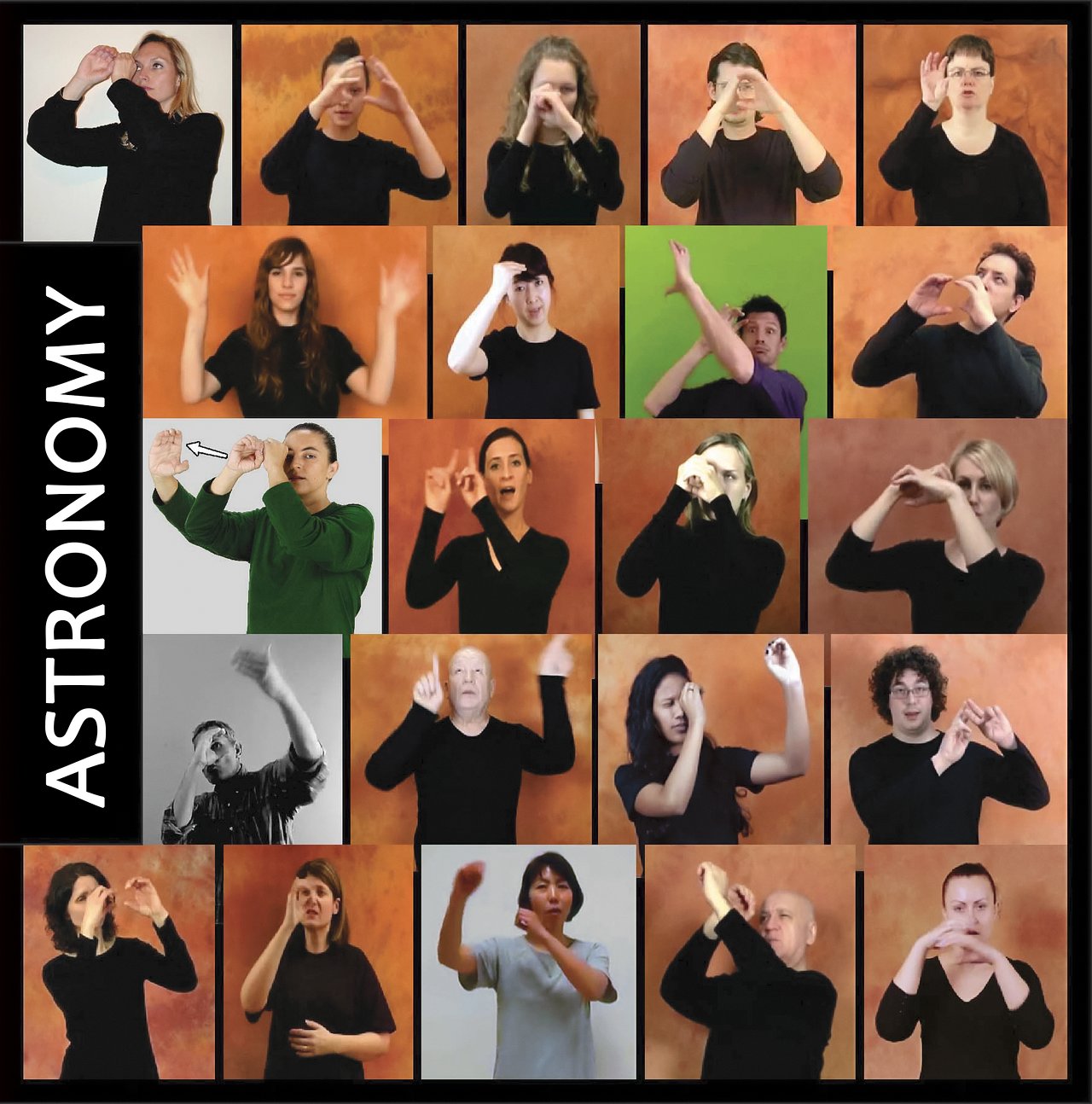 Ecco come si rappresenta la parola ’astronomia’ nelle lingue dei segni di alcuni paesi. Crediti: Iau-C1 Wg3 e collaboratori