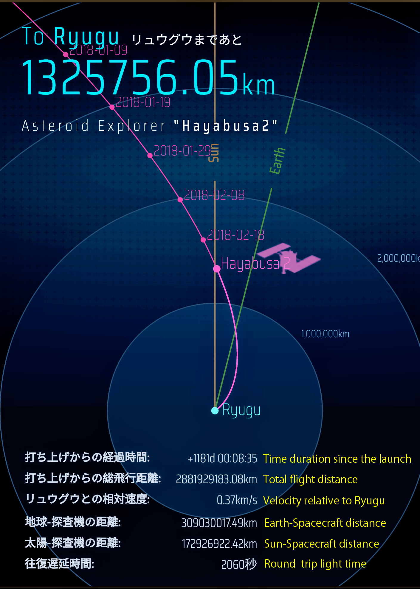 «Ora che vediamo Ryugu, il progetto Hayabusa-2 ha iniziato la fase finale di preparazione per l’arrivo all’asteroide», commenta il project manager Yuichi Tsuda. «Non ci sono problemi con l’itinerario verso Ryugu o con le prestazioni del veicolo spaziale. Andremo avanti con la massima spinta».