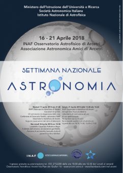A Firenze, l’Osservatorio astrofisico di Arcetri propone visite diurne per le scuole; la conferenza “Cacciatori di spettri. Gli astronomi e la dispersione della luce” di Emanuele Nardini (17 aprile ore 21), cui seguiranno le osservazioni del cielo al telescopio; un laboratorio per bambini dai 6 agli 11 anni dalle 14 alle 18:30 del 21 aprile, organizzato in quattro turni. Inoltre il 18 aprile alle 10:30 l’astronomia si sposterà presso la Ludobiblio dell’Ospedale pediatrico Meyer con “Il silenzio dell’universo nel planetario gonfiabile”, un percorso di astronomia riservato ai piccoli pazienti e ai loro familiari.