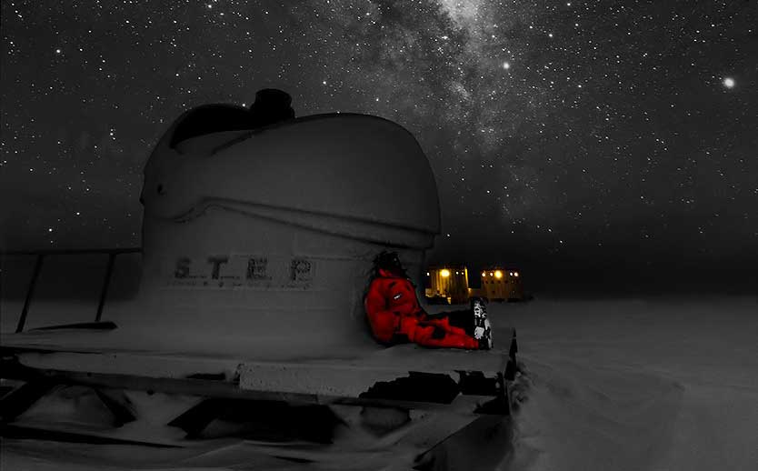 «Immaginate di stare qua, nel posto più freddo e isolato al mondo, persi in una immensa e piatta distesa bianca, lontani da tutto e tutti. Nessuno può raggiungervi, in alcun modo, e non potete più andar via. Nessun rumore. Silenzio assoluto e buio pesto. Se non fosse per il moto dei pianeti e quello apparente delle stelle, tutto sarebbe statico. Ecco perché adesso, finalmente, percepisco pienamente la sensazione di isolamento».