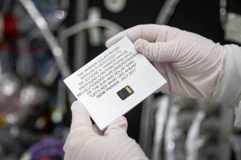 Insieme a tutti i suoi tecnologici strumenti scientifici, la sonda porterà attorno alla stella 1.137.202 nomi e una placca dedicata a Eugene Parker (l’astrofisico ed eliofisico a cui è dedicata la missione e che per primo sviluppò, negli anni ’50, la teoria sul vento solare). Nella memory card anche delle sue fotografie e una copia del suo famoso studio sul vento solare risalente al 1958.