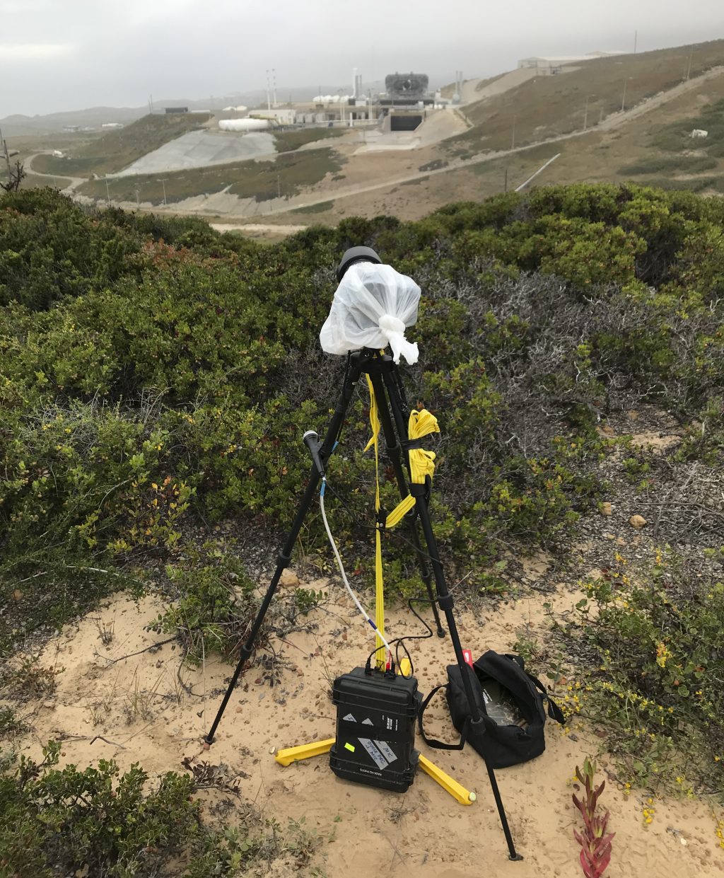 La rada vegetazione che ha preso fuoco si può vedere nell’immagine a fianco, che mostra com’era stata configurata e posizionata la fotocamera, a circa mezzo chilometro dal razzo. L’incendio è stato subito spento dagli addetti, ma non abbastanza in fretta da evitare la “cottura” della macchina fotografica.