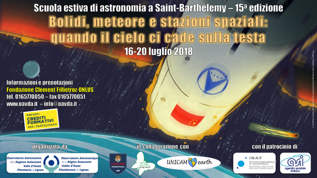Il titolo della scuola estiva 2018 è Bolidi, meteore e stazioni spaziali: quando il cielo ci cade sulla testa. Milioni di appassionati lettori di fumetti sanno che Asterix e Obelix hanno paura di una cosa sola, cioè che il cielo cada loro sulla testa. Non si tratta di una possibilità remota, come ci hanno ricordato nello scorso aprile il rientro fuori controllo della stazione spaziale cinese Tiangong-1 e l’asteroide 2018 G3 che, a sorpresa, è passato a circa 200mila km dalla Terra, metà della distanza Terra-Luna, un’inezia in termini astronomici.