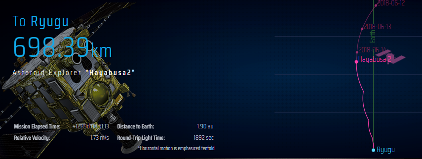 Mancano meno di 700 chilometri al traguardo e la sonda Hayabusa-2 (che vuol dire falco pellegrino) della Japan Aerospace Exploration Agency (Jaxa) arriverà a destinazione. Parliamo di un obiettivo di tutto rispetto, l’asteroide 162173 Ryugu a 300 milioni di chilometri dalla Terra, da cui la sonda giapponese raccoglierà dei campioni da riportare sul nostro pianeta entro fine anno.