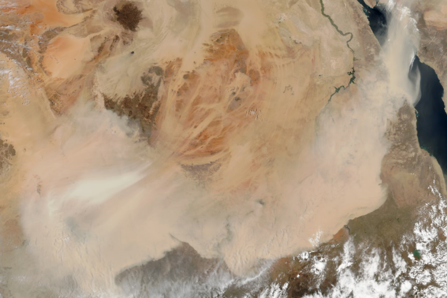 Tempesta di sabbia sul Sahara fotografata il 29 marzo 2018. Crediti: Nasa Earth Observatory, Jeff Schmaltz