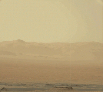 Nel giugno 2018 il rover Curiosity della Nasa ha usato la sua Mastcam per scattare foto dell’intensificarsi della foschia sulla superficie di Marte causata da una tempesta di polvere su larga scala. Il rover si trova nel cratere Gale e guarda verso il bordo del cratere, a circa 30 chilometri dalla sua posizione. L’immagine mostra una sequenza di scatti di circa un paio di settimane, partendo da una foto precedente l’arrivo della tempesta. Crediti: Nasa