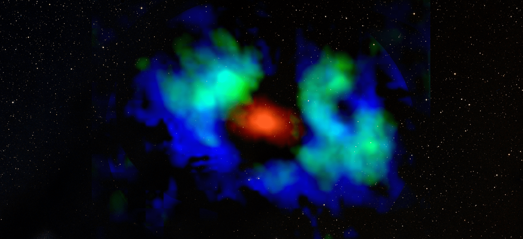 Un’immagine di TMC1A, una stella ancora in formazione nella costellazione del Toro. In rosso le aree con molte particelle di polvere. In verde e blu due tipi di monossido di carbonio. L’assenza di verde e blu nella parte interna indica che le particelle di polvere nel giovane disco protoplanetario sono cresciute da meno di un millesimo di millimetro a un millimetro. Crediti: Jørgensen/Harsono/EsaSky/Esac