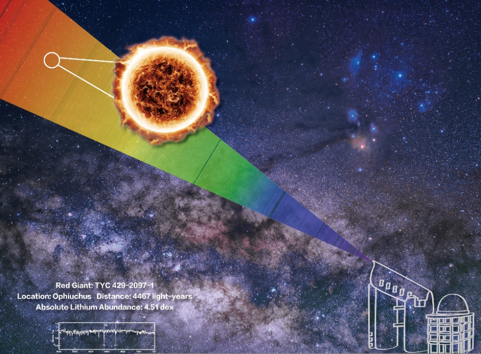 Un team di ricercatori guidato dagli astronomi del National Astronomical Observatories of China (Naoc) e dell’Accademia cinese delle scienze, ha infatti scoperto la stella gigante più ricca di litio attualmente nota. Essa ha un’abbondanza di litio tremila volte superiore alle giganti normali, alzando quindi l’asticella del possibile contenuto di litio nelle stelle rispetto a quanto atteso. Si trova nella costellazione dell’Ofiuco, a nord del disco galattico, a una distanza di 4.500 anni luce dalla Terra. La scoperta è stata realizzata con l’aiuto del Large Sky Area Multi-Object Fiber Spectroscopic Telescope (Lamost) del Xinglong Observatory del Naoc nel nord della Cina, telescopio che può osservare circa 4mila corpi celesti contemporaneamente, dando un grande contributo allo studio della struttura della Via Lattea. Informazioni dettagliate sulla stella sono state ottenute in seguito con una osservazione di follow-up da parte del telescopio Automated Planet Finder (Apf) del Lick Observatory, in California.