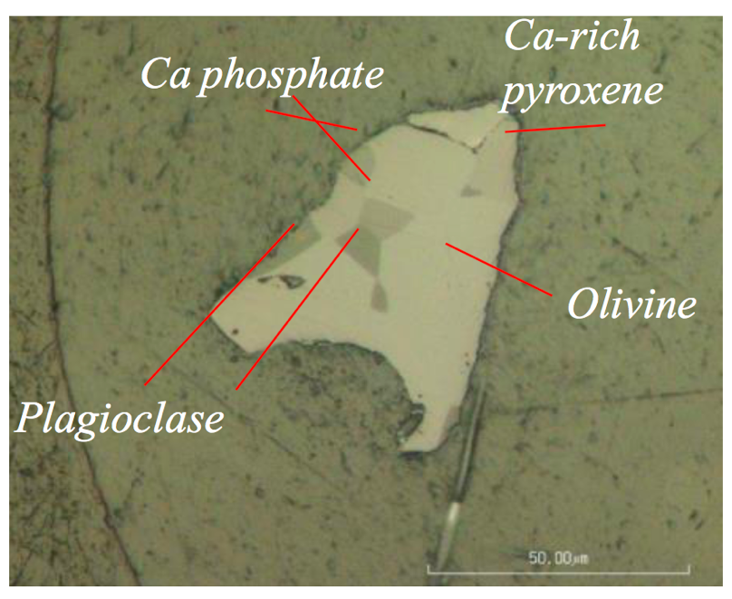 Sezione trasversale delle particelle raccolte dall’asteroide Itokawa dalla sonda Hayabusa. Crediti: Università di Osaka