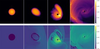 La composizione chimica dei detriti può allora avere conseguenze importanti: quei pochi istanti di combustione nucleare avvenuti durante la distruzione mareale della nana bianca diventano interessanti, poiché convertono la maggior parte degli elementi in essa presenti (elio, carbonio, ossigeno) in elementi più pesanti, prossimi al ferro. Le simulazioni condotte da Anninos e colleghi indicano che la combustione nucleare sia un risultato comune in questo tipo di incontri, la cui efficienza di conversione della massa – che può arrivare fino al 60 per cento – e i cui prodotti dipendono sensibilmente da quanto la nana bianca si avvicini al buco nero: a distanze maggiori si ottiene soprattutto calcio con bassa efficienza, mentre a distanze minori tra i due corpi si produce soprattutto ferro e l’efficienza aumenta notevolmente. Sempre secondo queste simulazioni tridimensionali, attualmente quelle a più alta risoluzione per eventi di distruzione mareale dovuta a buchi neri intermedi, il fenomeno genera anche brevi segnali di onde gravitazionali, con frequenze e ampiezze che potranno essere rilevate da strumenti futuri, come Lisa.