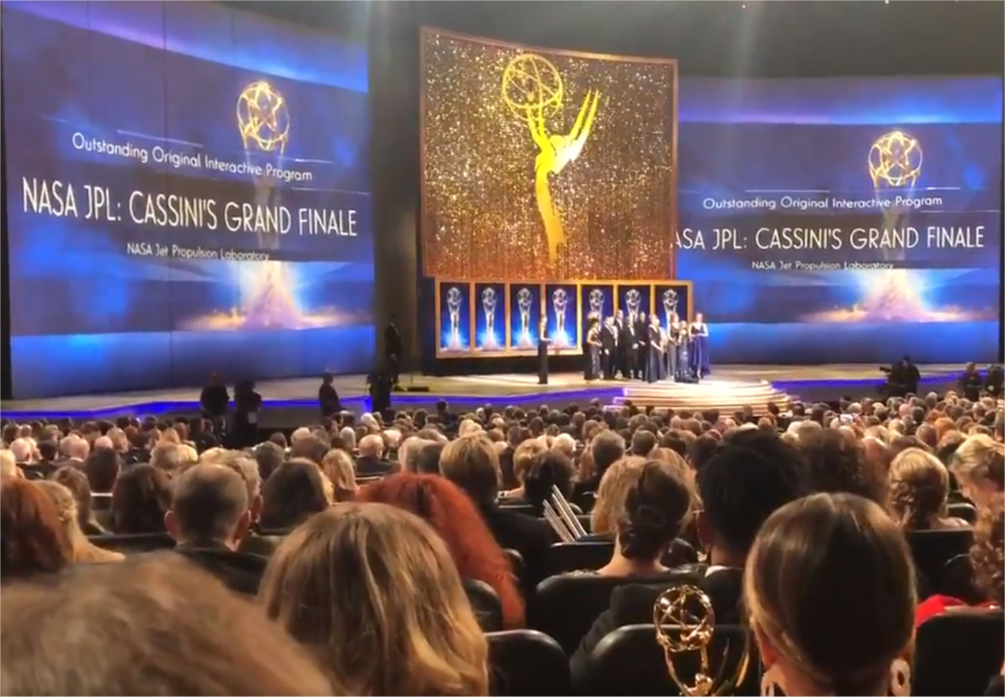 In questo 2018, per la settantesima edizione degli Emmy Awards, una delle statuette dorate degli Emmy è andata al Jpl della Nasa per il miglior “Outstanding Original Interactive Program”: il Gran Finale di Cassini. In lizza con “NASA JPL: Cassini’s Grand Finale”, per lo stesso premio, c’erano: “Back to the Moon”, “Blade Runner 2049: Memory Lab”, “Coco VR” e “Spider-Man Homecoming VR Experience”.