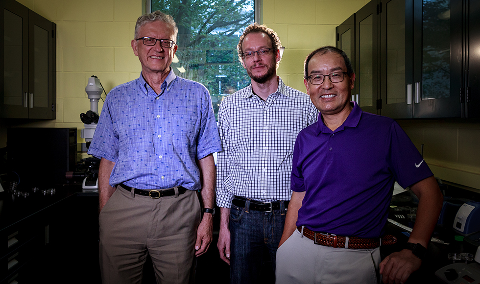Da sinistra: Ralph Pudritz (astrofisico), Maikel Rheinstadter (biofisico) e Yingfu Li (biochimico), i tre scienziati che hanno progettato il simulatore planetario. Crediti: Sarah Janes