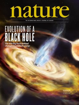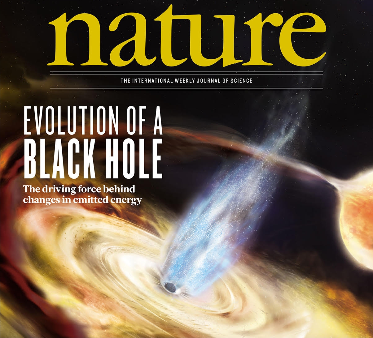 Copertina della rivista Nature dove è stato pubblicato lo studio sul buco nero di massa stellare, Maxi J1820 + 070. Crediti: Nature Publishing Group