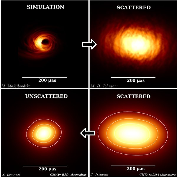 Per rimuovere l’effetto e ottenere l’immagine, il team ha utilizzato una tecnica sviluppata da Michael Johnson del Harvard-Smithsonian Center for Astrophysics (CfA). «Anche se la diffusione sfuoca e distorce l’immagine di Sgr A*, l’incredibile risoluzione di queste osservazioni ci ha permesso di definire le esatte proprietà dello scattering», afferma Johnson. «Potremmo quindi rimuovere la maggior parte degli effetti indotti dallo scattering per vedere come appaiono le cose vicino al buco nero. La bella notizia è che queste osservazioni mostrano che lo scattering non impedirà all’Event Horizon Telescope di vedere l’ombra del buco nero a 230 GHz, sempre che ne abbia una».