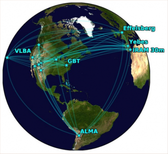 Il Global Millimeter Vlbi Array (Gmva), con anche Alma. Crediti: S. Issaoun, Radboud University/ D. Pesce, CfA
