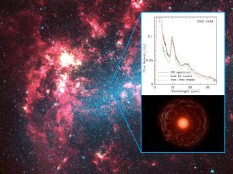 L’analisi dei dati del telescopio spaziale Spitzer della Nasa, condotte dal team di Ester Marini su alcune stelle nella Grande Nube di Magellano, ha evidenziato una loro peculiare emissione nella banda della radiazione infrarossa. Grazie ad accurati modelli teorici sviluppati presso l’Osservatorio astronomico di Roma dell’Inaf, i ricercatori hanno scoperto che queste sorgenti celesti hanno una composizione chimica povera di metalli e discendono da stelle di massa pari a circa cinque masse solari, formatesi intorno a 100 milioni di anni fa. Queste stelle sono sorprendentemente circondate per la maggior parte da ferro solido e non, come di solito avviene in stelle di massa simile, da silicati.