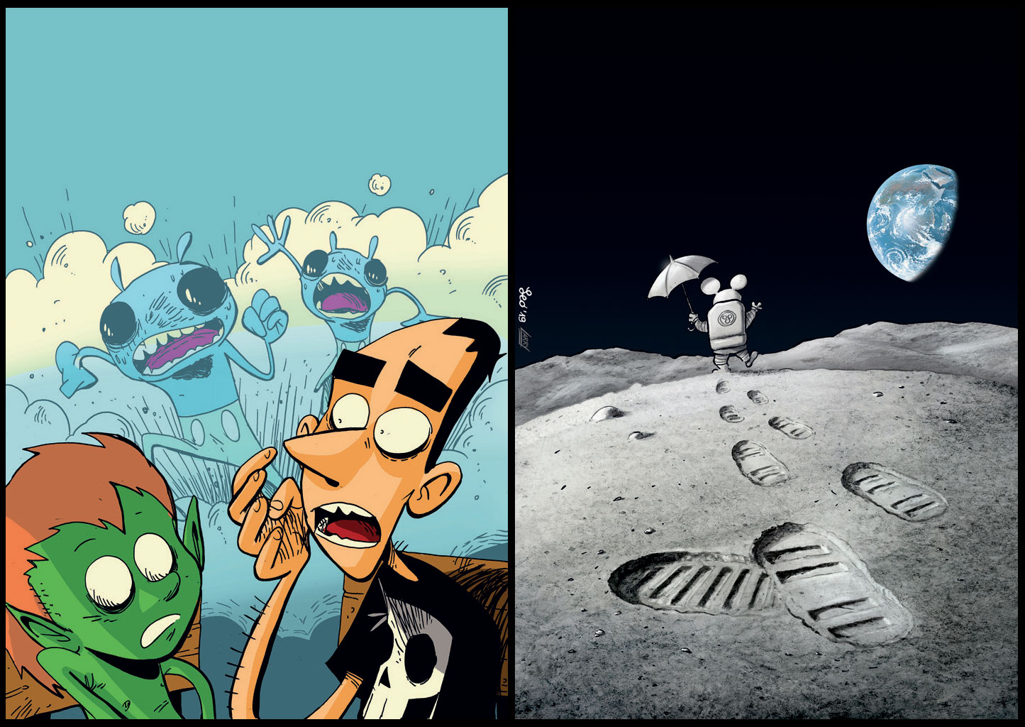 Da questa convinzione nasce “La scienza fra le nuvole”. Una mostra che raccoglie tavole, strisce e storie firmate da grandi fumettisti italiani e non ‒ Paolo Bacilieri, Carmine Di Giandomenico, Alessandro Micelli, Leo Ortolani, Giuseppe Palumbo, Luca Ralli, Silver, Zerocalcare, nonché le firme storiche di Topolino e dell’universo Marvel ‒ che, per gioco o per passione, hanno scelto di mettere la loro creatività al servizio dei più importanti enti di ricerca italiani. L’allestimento e il progetto grafico sono della Struttura per la Comunicazione Inaf.