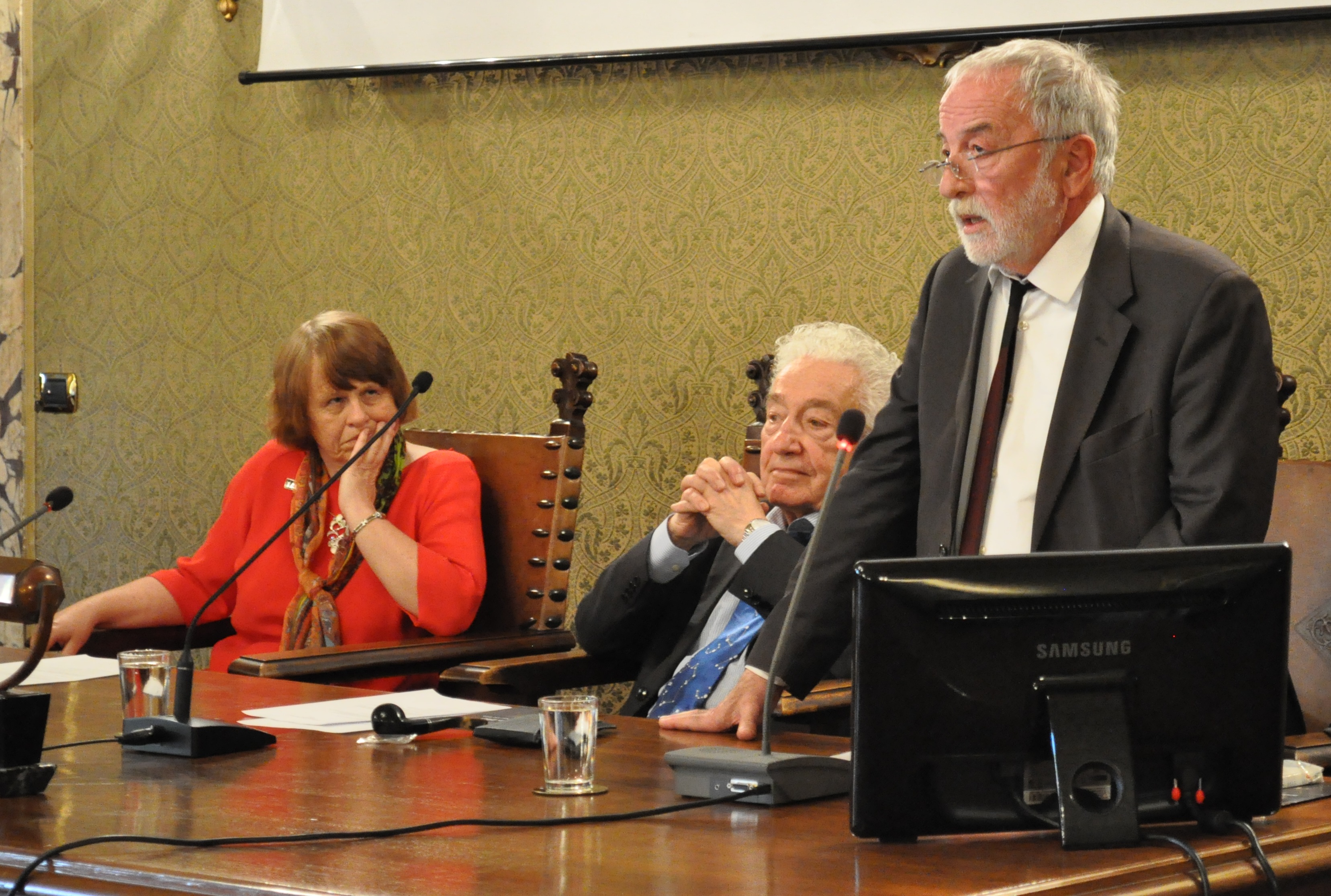 Il presidente dell’Inaf Nichi D’Amico (a destra) durante il suo intervento all’apertura dei lavori dell’Executive Committee della Iau. A sinistra, Ewin van Dishoeck, al centro Giancarlo Setti. Crediti: M. Galliani – Media Inaf