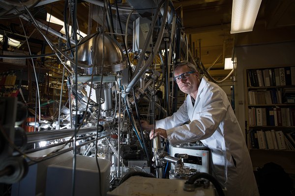 Konstantinos Giapis e il suo reattore in grado di convertire l’anidride carbonica in ossigeno molecolare. Crediti: Caltech