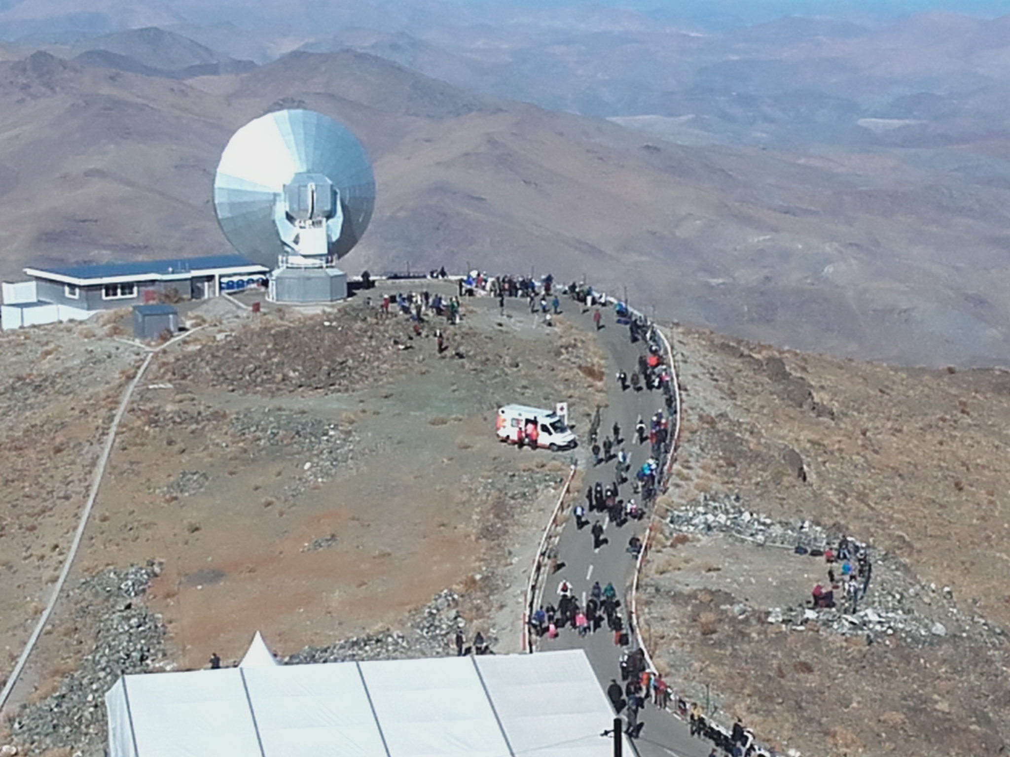 Eccoci qui – inizia a salire la gente. Approfitto della notte brevissima (siamo stati i primi a fare colazione, per lasciare poi lo spazio agli altri) per essere in prima fila per le visite guidate dei telescopi Eso ancora attivi sulla montagna: il “3,6” e l’Ntt.