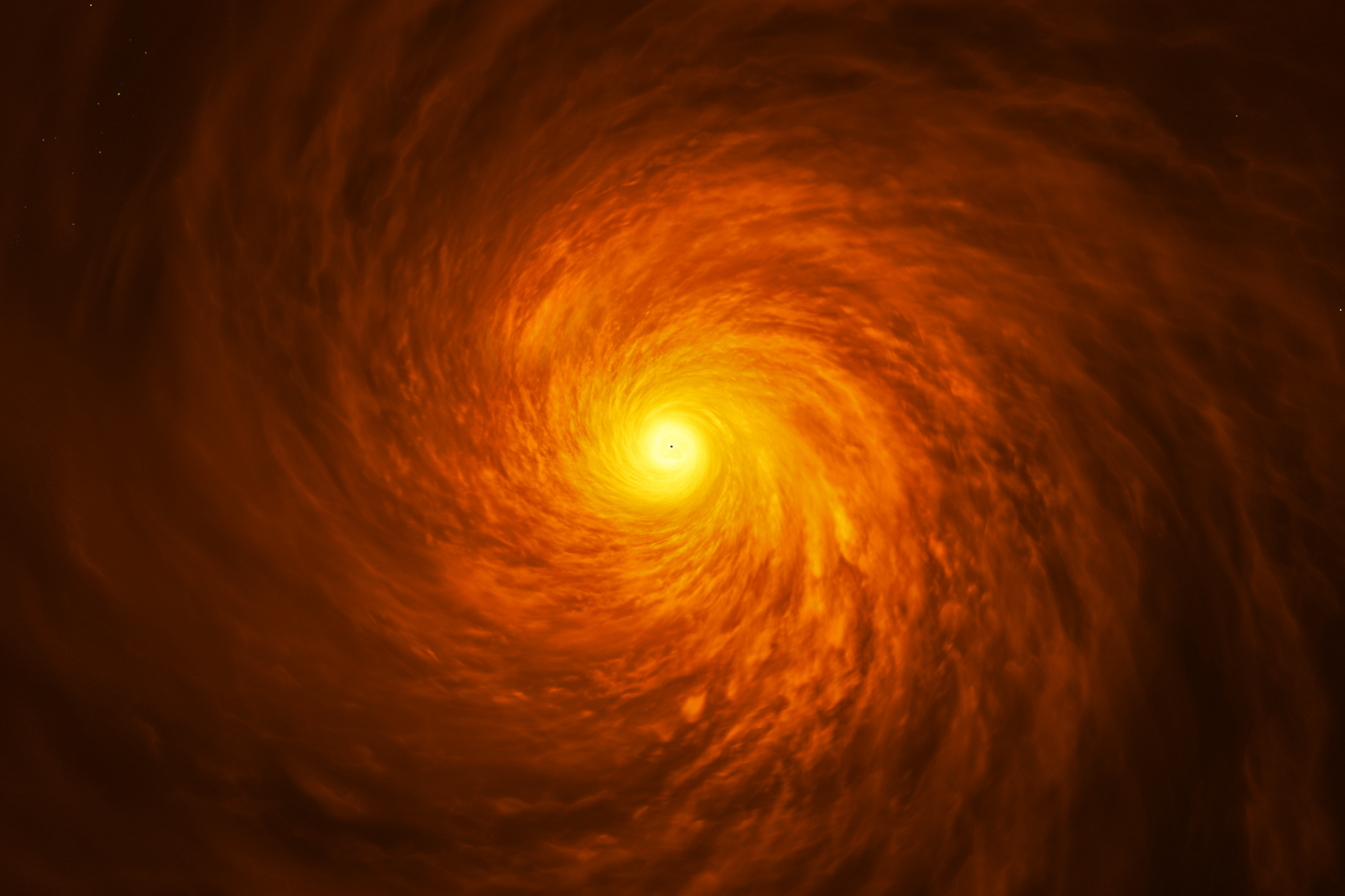 Rappresentazione artistica del tenue disco attorno al buco nero centrale della galassia Ngc 3147. Crediti: Esa/Hubble, M. Kornmesser