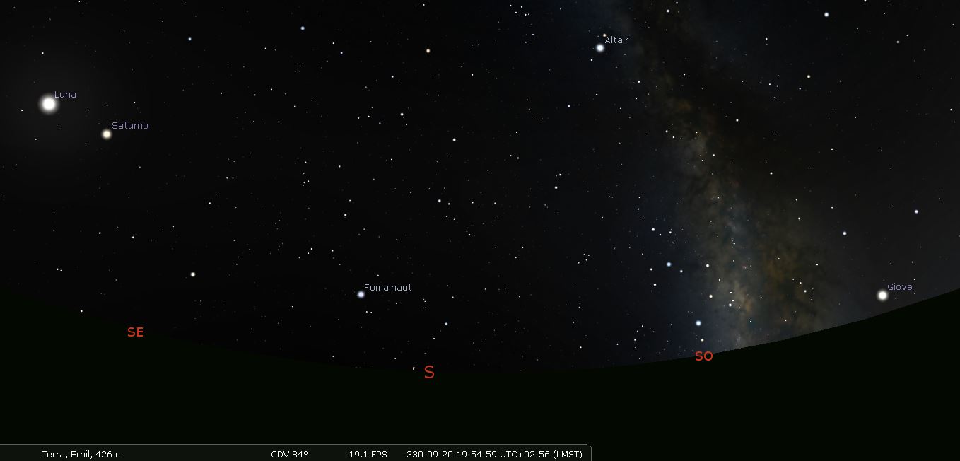 Il 20 settembre (il tredicesimo giorno del mese Ulul) al calar del sole, sopra gli accampamenti dei contendenti, la luna sorge a est e dopo circa due ore entra in eclissi. Al suo fianco brilla maligno il pianeta Saturno, mentre Giove, pianeta della regalità, è appena tramontato ad occidente. Il diario astronomico conferma questa situazione: “Eclissi [della luna], coperta nella sua totalità. Notte per 10° (40 minuti). La totalità [iniziò dopo il tramonto di] Giove. Saturno [in congiunzione con la luna]. Durante la totalità soffiò il vento da Occidente. Durante la riapparizione si alzò il vento da Est. Durante l’eclissi si verificarono morti e flagelli”.