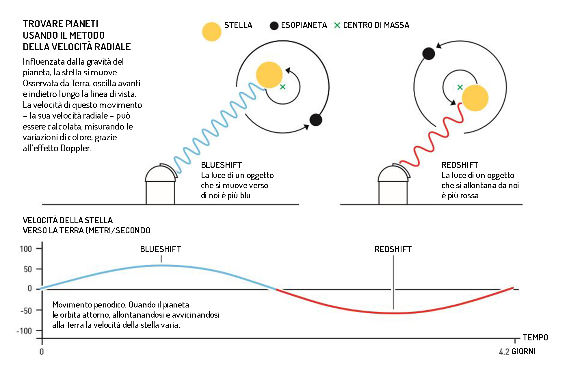 Infografica sul metodo della velocità radiale per la caccia agli esopianeti (cliccare per ingrandire). Crediti: nobelprize.org (trad. it. di Media Inaf)