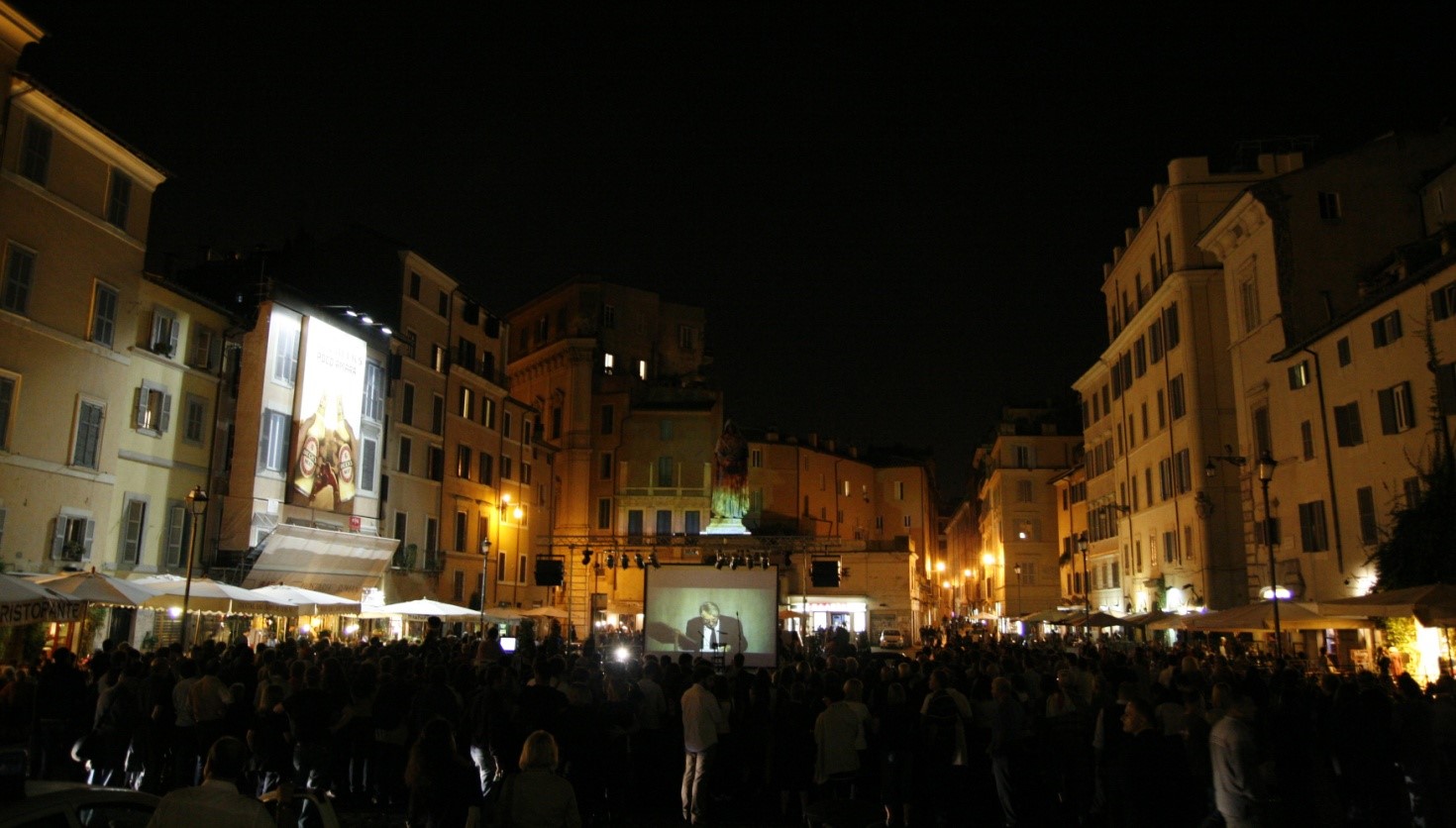 La folla che riempiva Campo dei Fiori a Roma l’8/10/2009 in occasione dell’evento “Infiniti Soli, Innumerabili Mondi”, organizzato dal Planetario di Roma per rievocare la scoperta dei pianeti extrasolari proprio davanti alla statua di Giordano Bruno. Durante la serata fu osservato in diretta e condiviso con il pubblico il transito di un pianeta extrasolare (TrES-3b), e i telescopi mostrarono a tutti i presenti i principali soli allora noti, presenti in cielo: Gamma Cephei, Upsilon Andromedae e, naturalmente, 51 Pegasi (foto di Fabio Barbati)