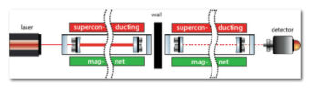 Due serie di 12 magneti, separate da un muro divisorio, ospitano ciascuna una cavità ottica lunga 120 metri, all’interno della quale un potente sistema laser produce luce. Questa luce, secondo la teoria alla base dell’esperimento, verrebbe in piccolissima parte convertita in particelle di materia oscura grazie all’amplificazione portata dal campo magnetico. Il muro che separa i due compartimenti blocca la luce ma non particelle come gli assioni, che verrebbero riconvertiti in luce e quindi rilevati nel secondo compartimento.