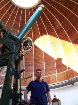 Stefano Zibetti nella cupola dello storico telescopio “Amici”, all’Osservatorio astrofisico dell’Inaf di Arcetri. Crediti: S. Zibetti/Inaf