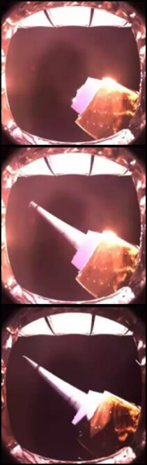 Tre fasi del dispiegamento di una delle tre antenne di Queqiao. Crediti: Marc Klein Wolt / Radboud University