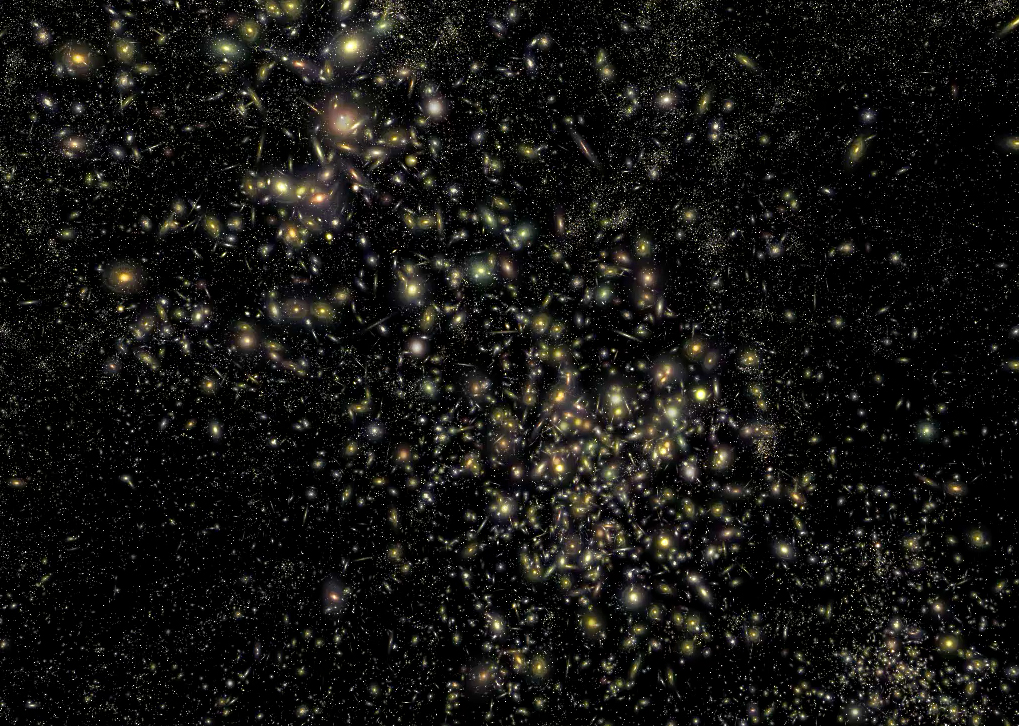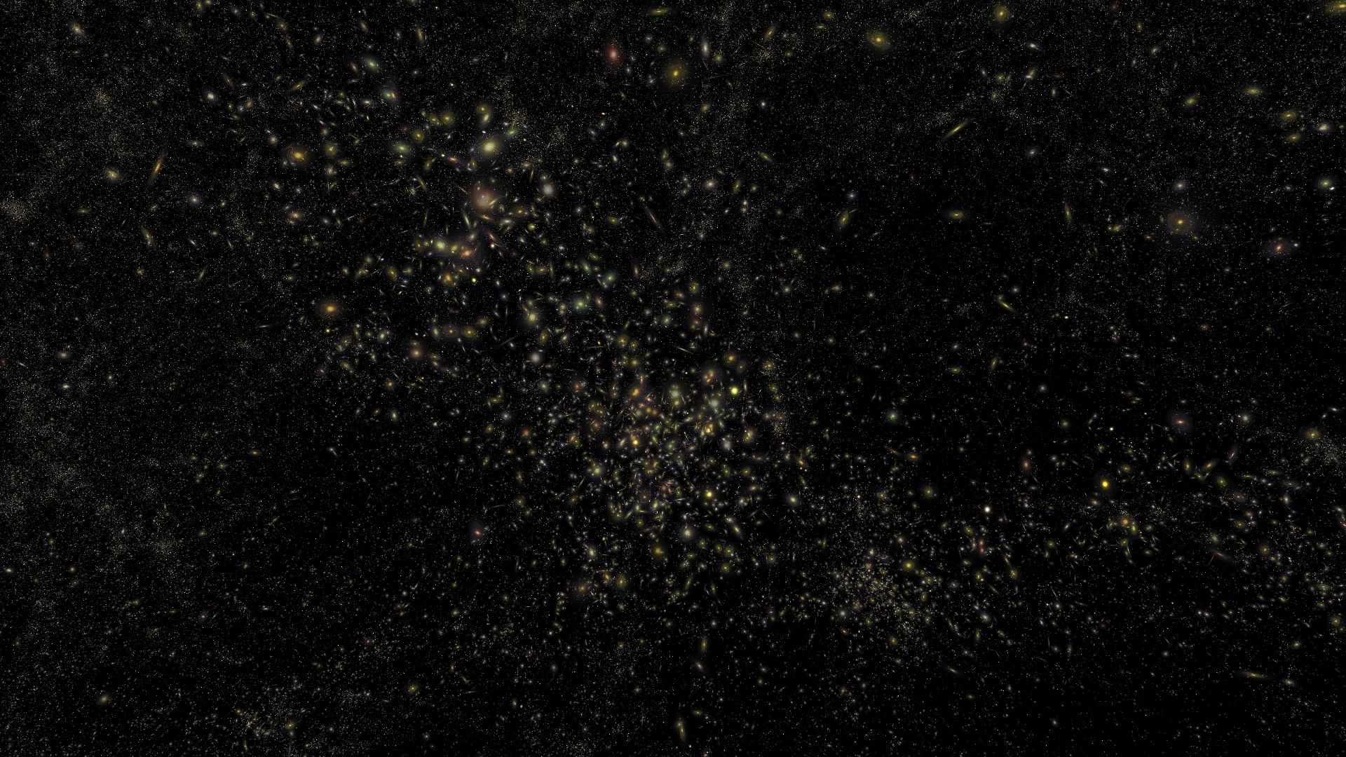 Rappresentazione artistica della distribuzione a larga scala delle galassie e dei buchi neri supermassicci al loro centro. Crediti: Chris Marsden / University of Southampton
