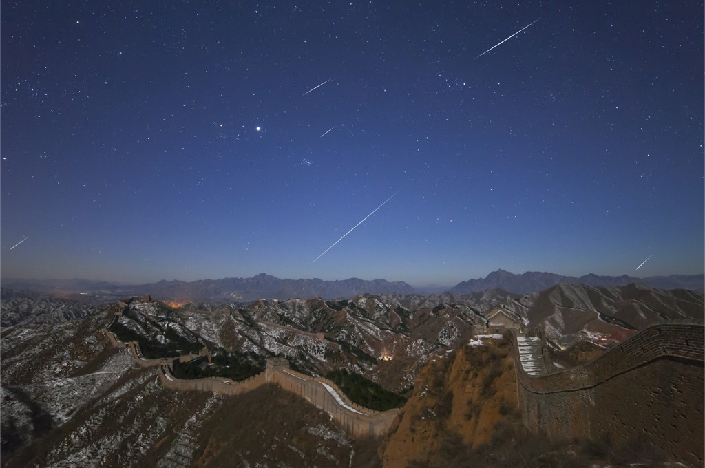 Nasa Astronomy Picture of the Day del 3 gennaio 2020: le Quadrantidi riprese dalla muraglia cinese. Crediti: Cheng Luo/Nasa