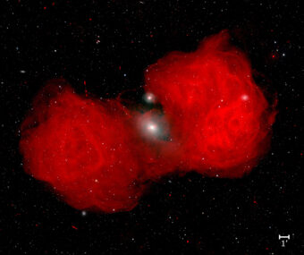 Il nuovo studio è stato coordinato da Filippo Maccagni, astrofisico postdoc all’Inaf di Cagliari, come molti dei coautori (Matteo Murgia, Federica Govoni, Paolo Serra, Dane Kleiner, Daniel Molnár e Mpati Ramatsoku). L’attenzione dei ricercatori si è focalizzata sulla strana forma e sulla radiazione dei cosiddetti “lobi”: enormi aloni di plasma – invisibili alle frequenze ottiche ma molto evidenti in quelle radio (in rosso nell’immagin ein alto) – che caratterizzano Fornax A. Per capire i meccanismi della loro nascita, il team ha rielaborato i dati da ben cinque telescopi: il Murchison Widefield Array (Mwa) in Australia, il satellite Planck, il Very Large Array (Vla) negli Usa, il Sardinia Radio Telescope (Srt) e, ovviamente, lo stesso MeerKat, il più recente e sensibile di tutti, costruito in Sudafrica.