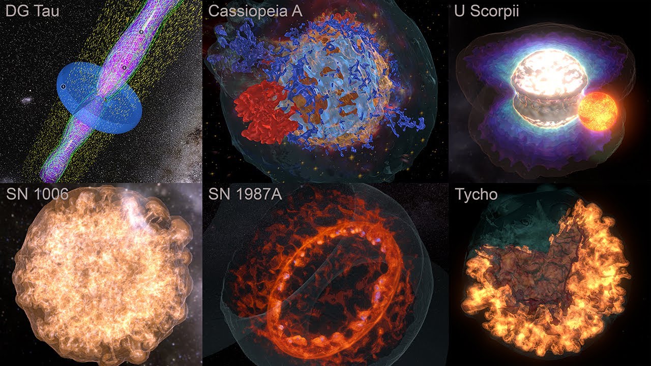 Una protostella, una nova e vari resti di supernove. Tutte in 3D, tutte coloratissime. Sono le animazioni scientifiche selezionate la settimana scorsa dal team del telescopio Chandra e riprese in home page sul sito web della Nasa. Una più affascinante dell’altra, non sfigurerebbero come videoinstallazione in una galleria d’arte contempoanea. Portano tutte e sei la firma di un astrofisico dell’Inaf di Palermo, Salvatore Orlando, e dei suoi colleghi.