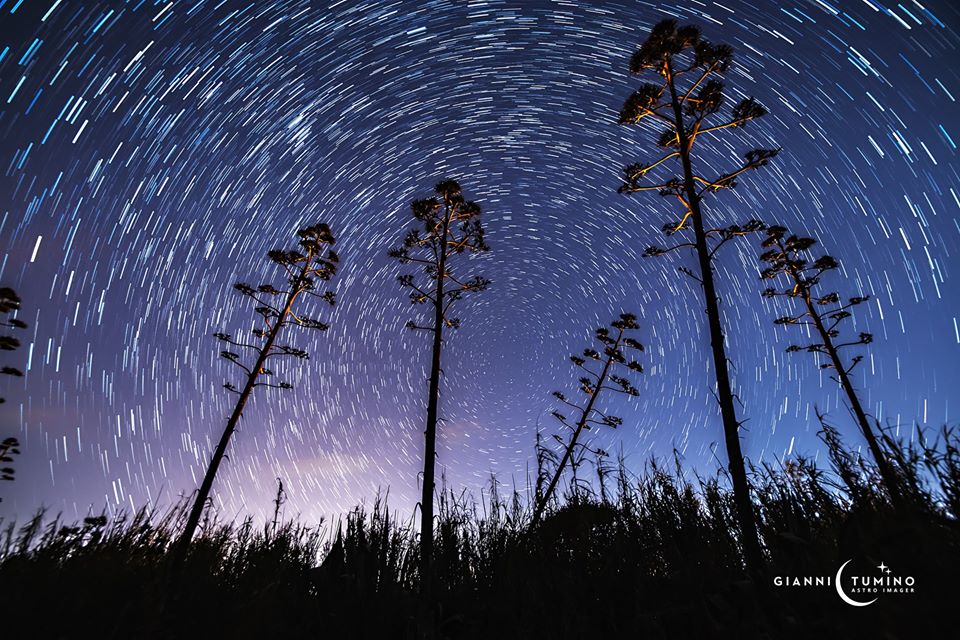 «Ho fatto stars trail anche di soli 30 minuti. L’ideale per ottenere semicerchi celesti perfetti sarebbe farlo di 12 ore. Non sempre però ciò è possibile, soprattutto per le condizioni del cielo e per la disponibilità di tempo. Un discreto risultato può anche essere ottenuto in 30-35 minuti, ma è possibile realizzare stars trail anche in meno tempo. Uno che ho realizzato a Cava D’aliga, sempre in territorio di Ragusa, è di 50 frames di 10 secondi a intervalli di 5, per un totale di esposizione di circa 10 minuti. L’importante è accoppiare sempre una parte di paesaggio alla tracce stellari, le più belle delle quali sono sicuramente quelle prodotte attorno alla stella polare, che creano questi cerchi visivamente ipnotici».